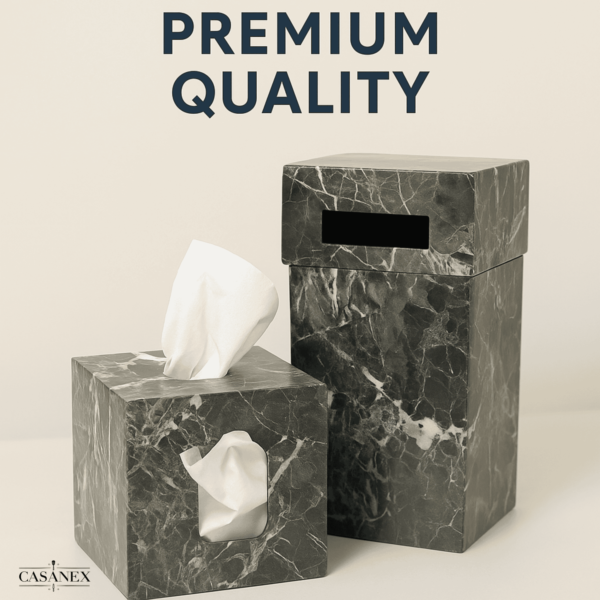 Bring elegance and utility together with this Luxury Marble Tissue Box & Dustbin Set, crafted for modern homes that love a clean aesthetic. The sleek marble tissue box features a smooth pull-top opening for easy access to tissues, while the matching marble dustbin comes with a convenient foot pedal for hands-free use.